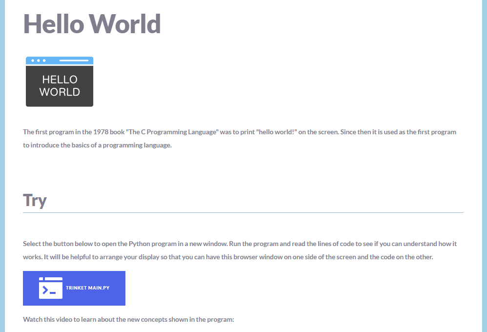 Time2Code uses Trinket as its online IDE for Python. Unfortunately, that service is shutting down later this year, probably in June. Much of Time2Code is already available on the GoCodeIt platform so we will be hosting our starter code for students there instead.